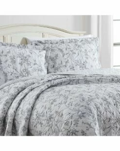 Laura Ashley Branch Toile 3Pc Grey Quilt Set Home Comforters & Quilts