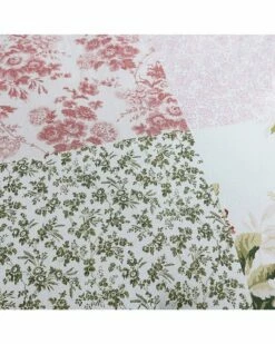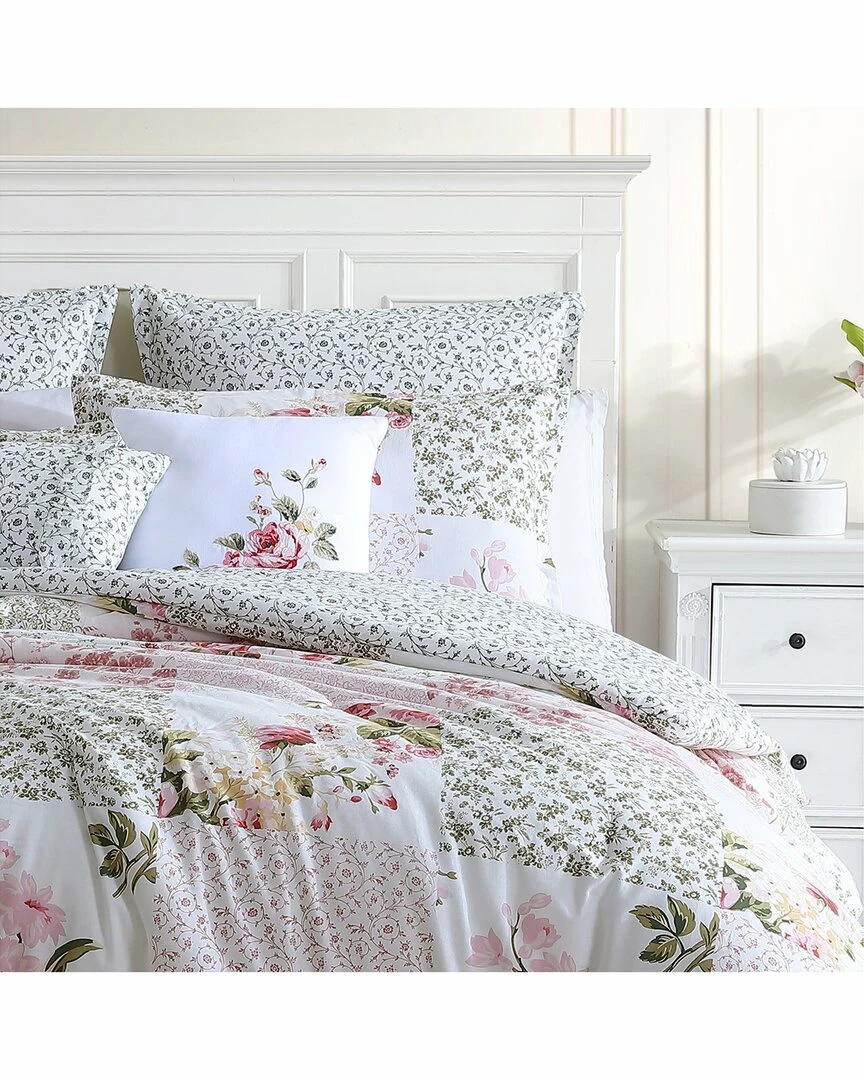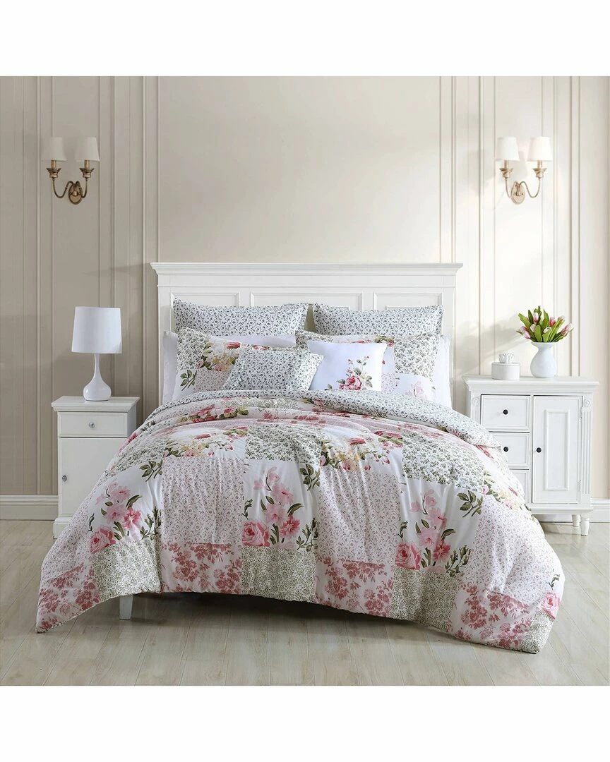- Design details: the ailyn comforter and accessories set brings the classic charm of a country cottage garden to your bedroom. a patchwork print of pink and rose florals accented with green reverses to a delicate vine pattern in green on white. made from 100% cotton, this set includes a comforter, matching shams, european shams in coordinating green vine pattern, ruffle trimmed green printed 12×18″ pillow and white embroidered bouquet 16×16″ pillow. twin set includes comforter, one sham, one european sham and two decorative pillows.