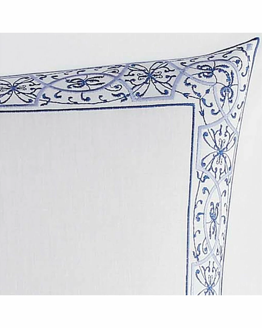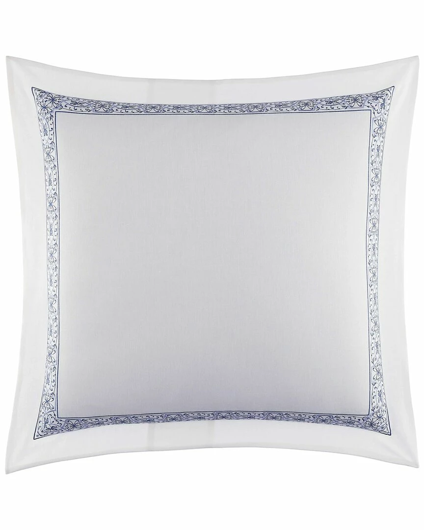 - Design details: deliver a sense of historical elegance to your bedroom with this decadent european sham. white porcelain and blue embroidery have been a decor favorite for hundreds of years, their serene juxtaposition an eye catching way to imbue your space with a sense of luxury and refinement. this sham has an envelope closure that stays securely in place and slips off for quick and easy cleaning.