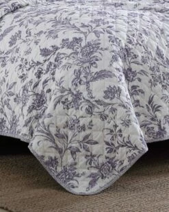- Design details: this is not your typical laura ashley floral. the delila quilt set offers a clean two-tone floral design. a medium plum floral design is printed over a white ground. the quilt reverse has a floral vine print on a plum ground. let the 100% cotton materials surround and comfort you the next time you crawl into bed.