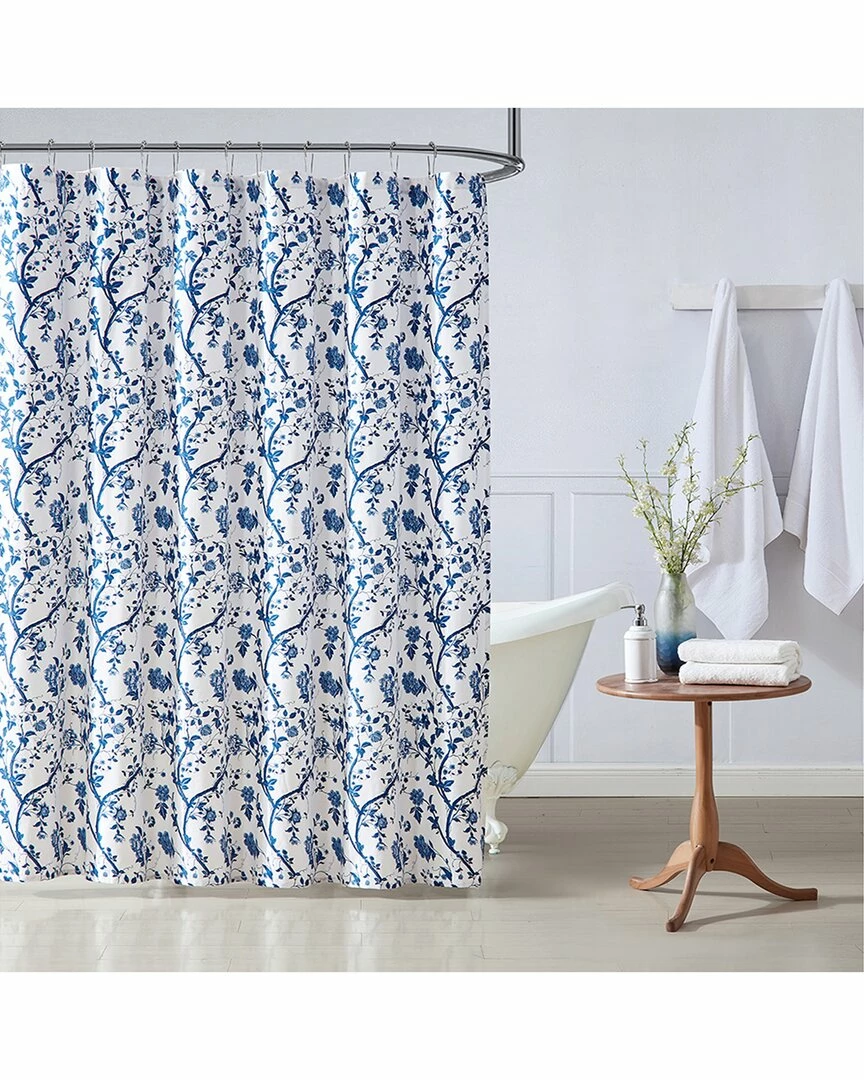 - Design details: update your bathroom with the elise shower curtain, featuring a beautiful floral design in china blue on a cotton quality.