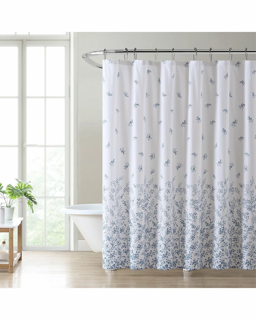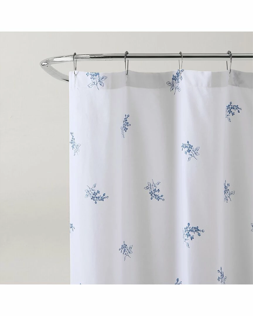 - Design details: this shower curtain is soft yet durable,shower curtain has 12 hook holes; hooks sold separately,made in oeko-tex standard 100 factory, an independent certification system that ensures textiles meet high safety and environmental standards, laura ashley flora shower cutain has a crisp white ground with delicate medium blue flowers