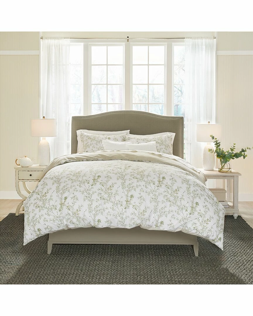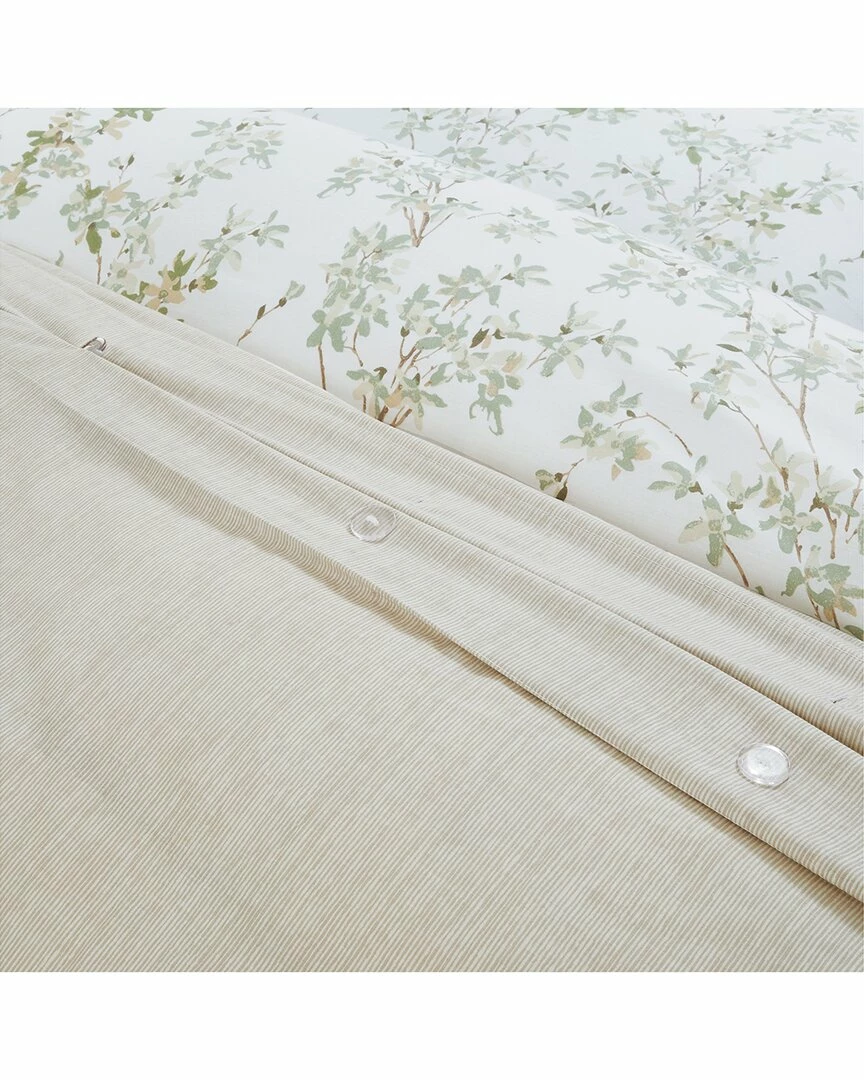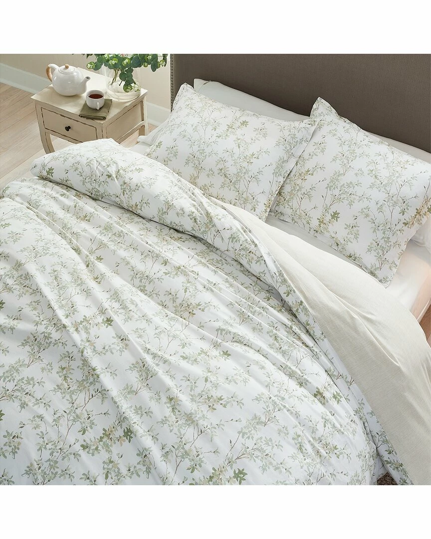- Design details: no matter the season, you can always wake up to spring with this delicate design of leafy branches. hues of spa green, beige and white is a classic pairing that will transform your bedroom into a relaxing retreat. reverses to a neutral beige stripe. made of 100% cotton. the set includes 1 duvet and 2 shams. a duvet cover is a great choice to update your bedroom each season, and is easy to wash and store. machine washable for easy care