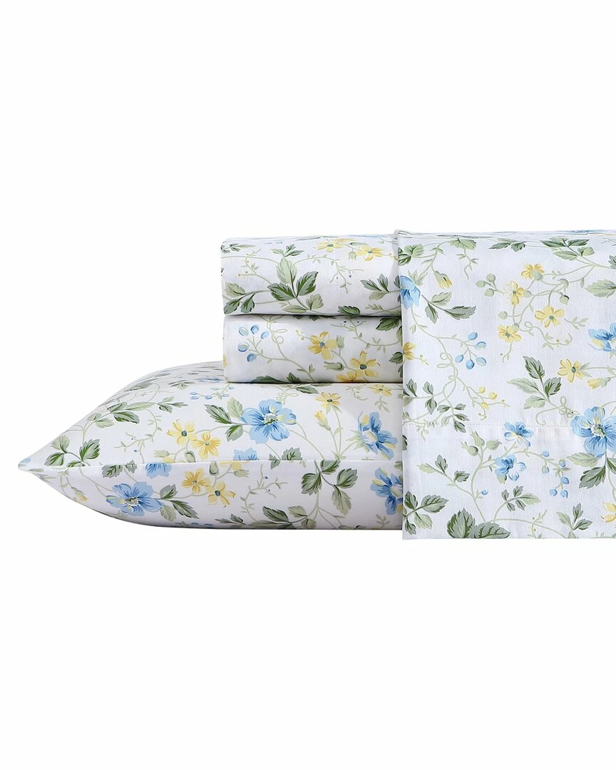 Laura Ashley Meadow Floral 100% Cotton 300 Thread Count Sateen Sheet Set Home Sheets