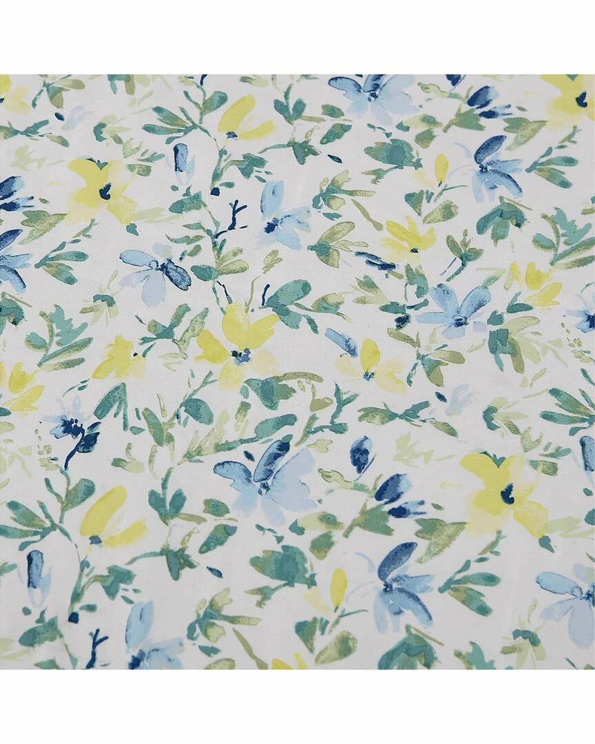 - Design details: update your bathroom with the nora shower curtain, featuring a beautiful watercolor floral design in a garden fresh palette of cornflower blues and sunny yellow on a cotton quality.