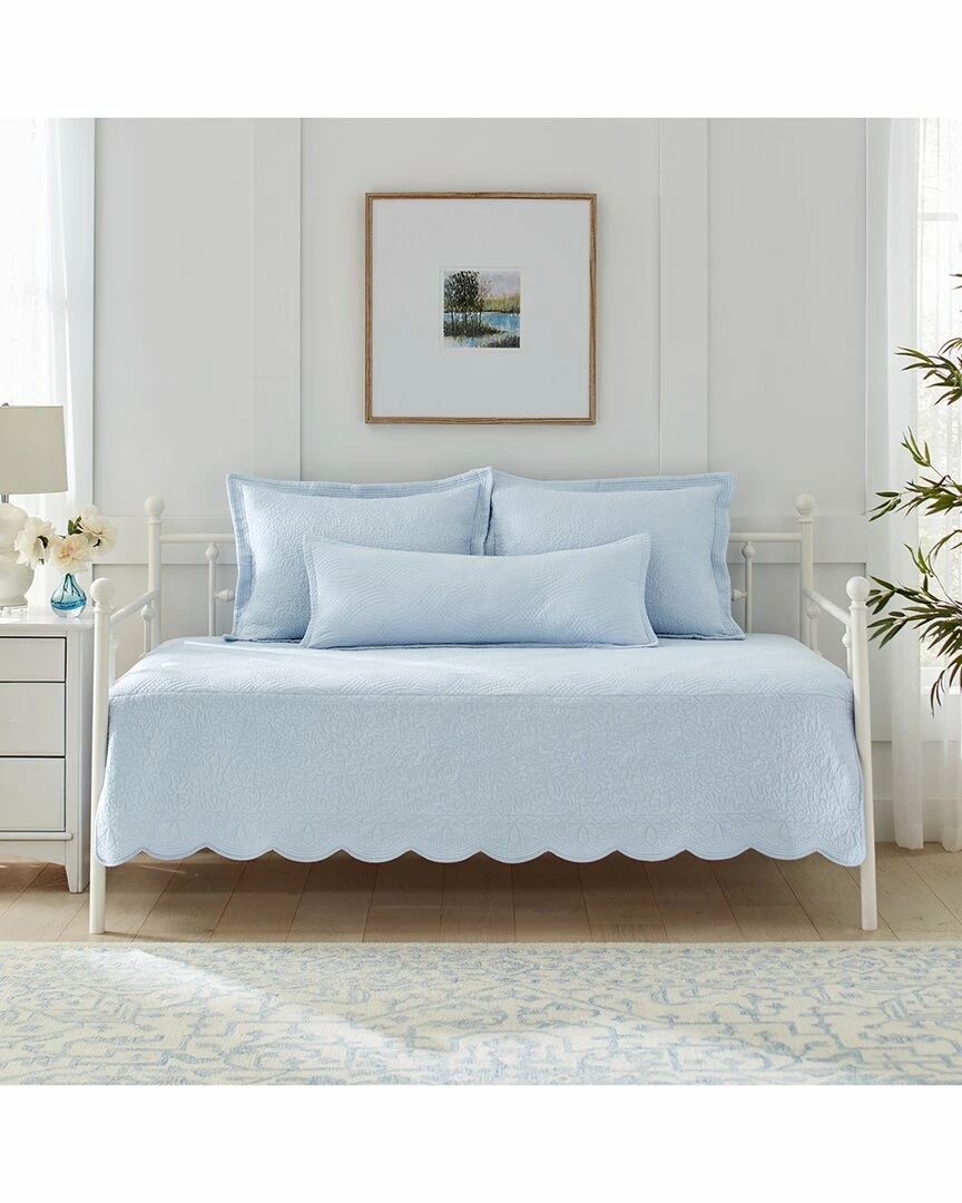 - Design details: this daybed is lightweight with a quilted texture; prewashed for softness, quilt fill: 80% cotton & 20% polyester; blended for softness and durability, included shams and pillow cover feature an envelope closure,, laura ashley trellis daybed is solid light blue with tonal blue stitching