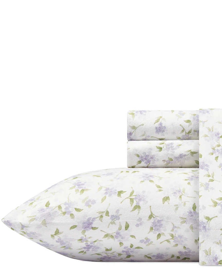 - Design details: Bring a serene look and feel to your bedroom with the Laura Ashley Virginia Flannel Sheet Set. Beautifully embellished with a purple floral design, the budding sheet set instantly adds sweet style to your bedroom. The approved process for finishing our quality flannel sheets is an 8-leveled brushing standard. The cotton yarns are woven, then brushed 3 times on the face and once on the back, the fabric is then colored and or printed and finished with 3 additional brush treatments on the face and 1 on the back. This process ensures a comfortable, very soft and cozy finish.